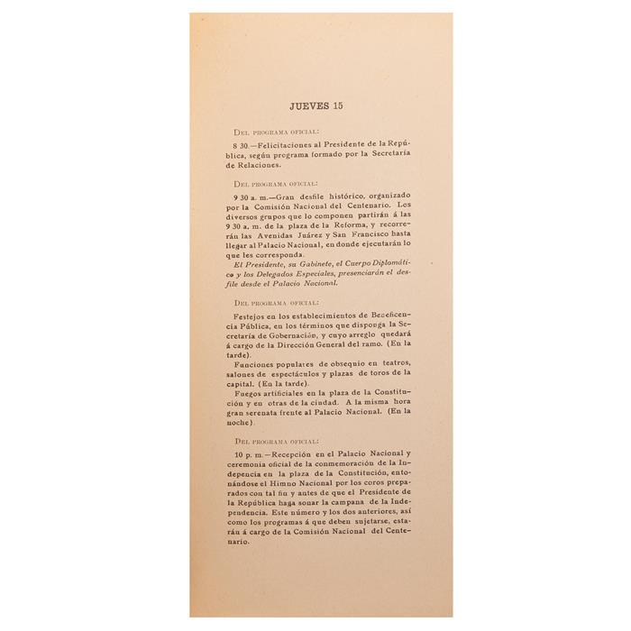 Programa General de las Festividades del Primer Centenario de la Independencia de México. México: Imprenta de la Compañía Editora Nacional, 1910.