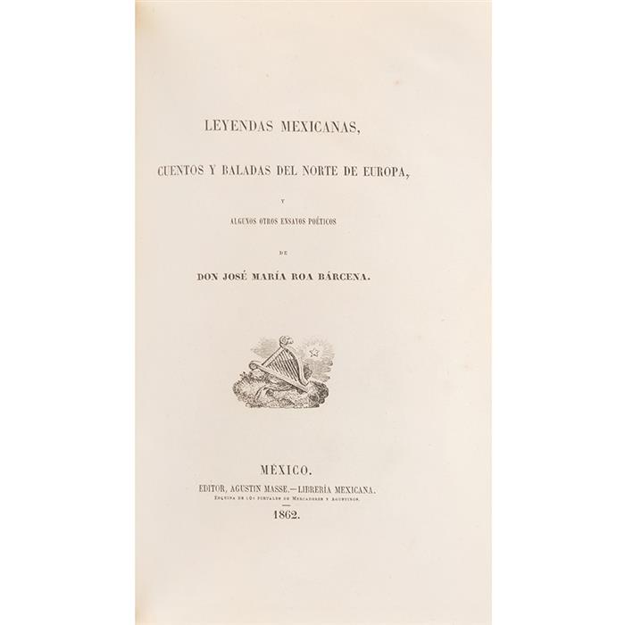 Roa Bárcena, José María. Leyendas Mexicanas, Cuentos y Baladas del Norte de Europa. Y Algunos otros Ensayos Poéticos. México: Editor, Agustín Masse - Librería Mexicana, 1862.