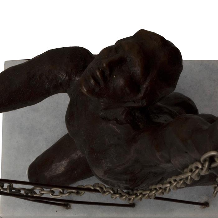 Metal, patinado en color marrón; estructura de alabastro y base de madera