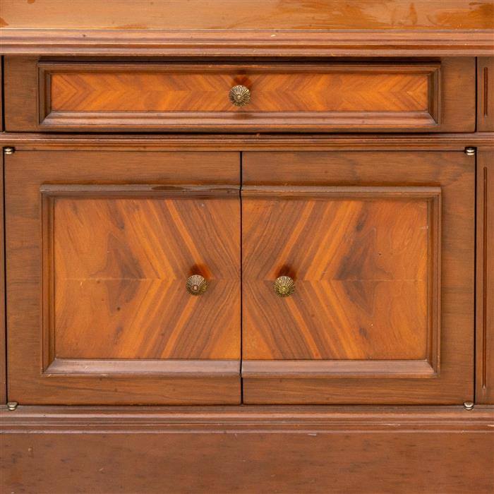 Cuenta con remate superior y pináculos. Con soportes tipo zócalo
