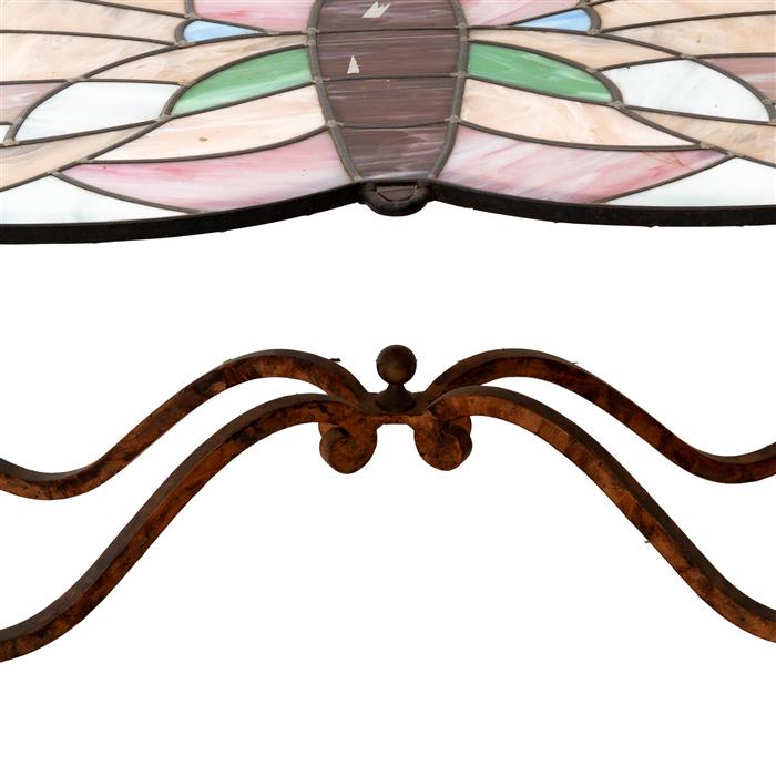 Elaborada en herrería con vidrio emplomado.