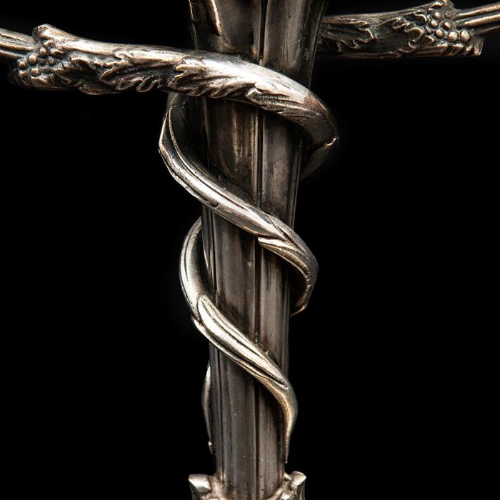 Metal plateado, estilo ART DECO, para dos luces; base redonda, fuste de diseño compuesto, relieves con figuras de tipo vegetal