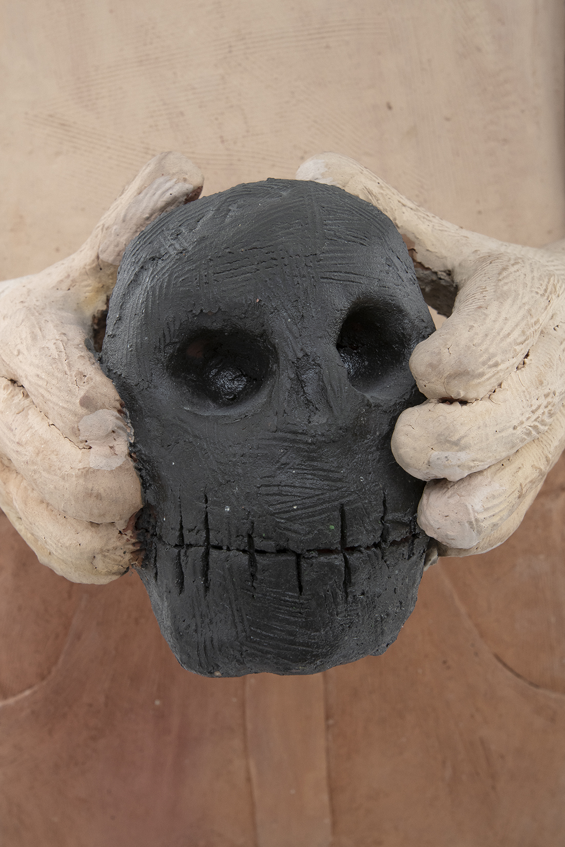 Subasta 1204, Lote # 154 ADOLFO RIESTRA (Tepic, Nayarit, 1944 - Ciudad de México, 1989) A) Hombre con calavera B) Mujer con cempasúchil Firmadas y fechadas 86 cada una Esculturas en barro cocido, piezas únicas Piezas: 2. Cada pieza se desmonta en cuatro partes. Procedencia: adquiridas en Galería OMR. Presentan restauración. "El trabajo en barro –tradición antigua tanto en el occidente como en el oriente de México– desde hace tiempo despertó mi curiosidad y provocó mi interés, mi deseo de penetrar en la entraña de figuras fantásticas que iban emergiendo de la pasta húmeda, de la tierra moldeable [...] Hueco como un guaje, el barro se amasa y moldea dejando siempre espacios para respirar, espacios rodeados de una superficie tan delgada como hojaldre [...]". Adolfo Riestra. Fuente consultada: MACMASTERS. Merry. "Muestra repasa la pulsión por la disidencia que plasmaba Adolfo Riestra en sus creaciones". México. La Jornada, sección Cultura, septiembre 2024, pág. 5. a) 172 x 46 x 57 cm / b) 157 x 51 x 50 cm Estimado $1,500,000-2,200,000
