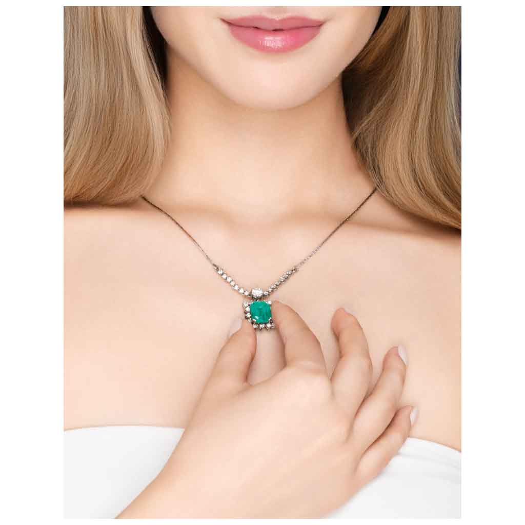GARGANTILLA CON ESMERALDA Y DIAMANTES EN ORO BLANCO DE 14K Y ORO AL PALADIO