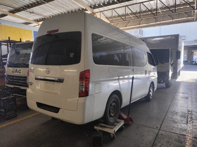 Subasta 55COPP, Lote # 65 Eco. U51352; Camioneta Pasajeros, Urvan; Marca: Nissan; Modelo: 2015; Serie: JN1BE6DS9F9005262; Ubicación: Mexicali; Observaciones: Unidad sin prueba de arranque, por lo que no se garantiza su funcionamiento, motor a gasolina, con fuga de aceite, bateria dañada, falta bayoneta para revisar nivel de aceite y llave; transmision estandar sin probar; diferencial sin probar; interiores regulares, vestidura y tapete rotos; instrumentos regulares, tablero regular completo; suspension de muelles sin probar; chasis con corrosion; carroceria con golpes ligeros, lateral de carroceria lado derecho y fascia trasera dañados, faros opacos; 4 llantas con 1/4 de vida. ; Estimado $86,000