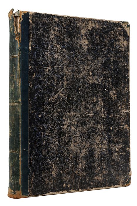 Encuadernado en pasta dura, lomo en piel.