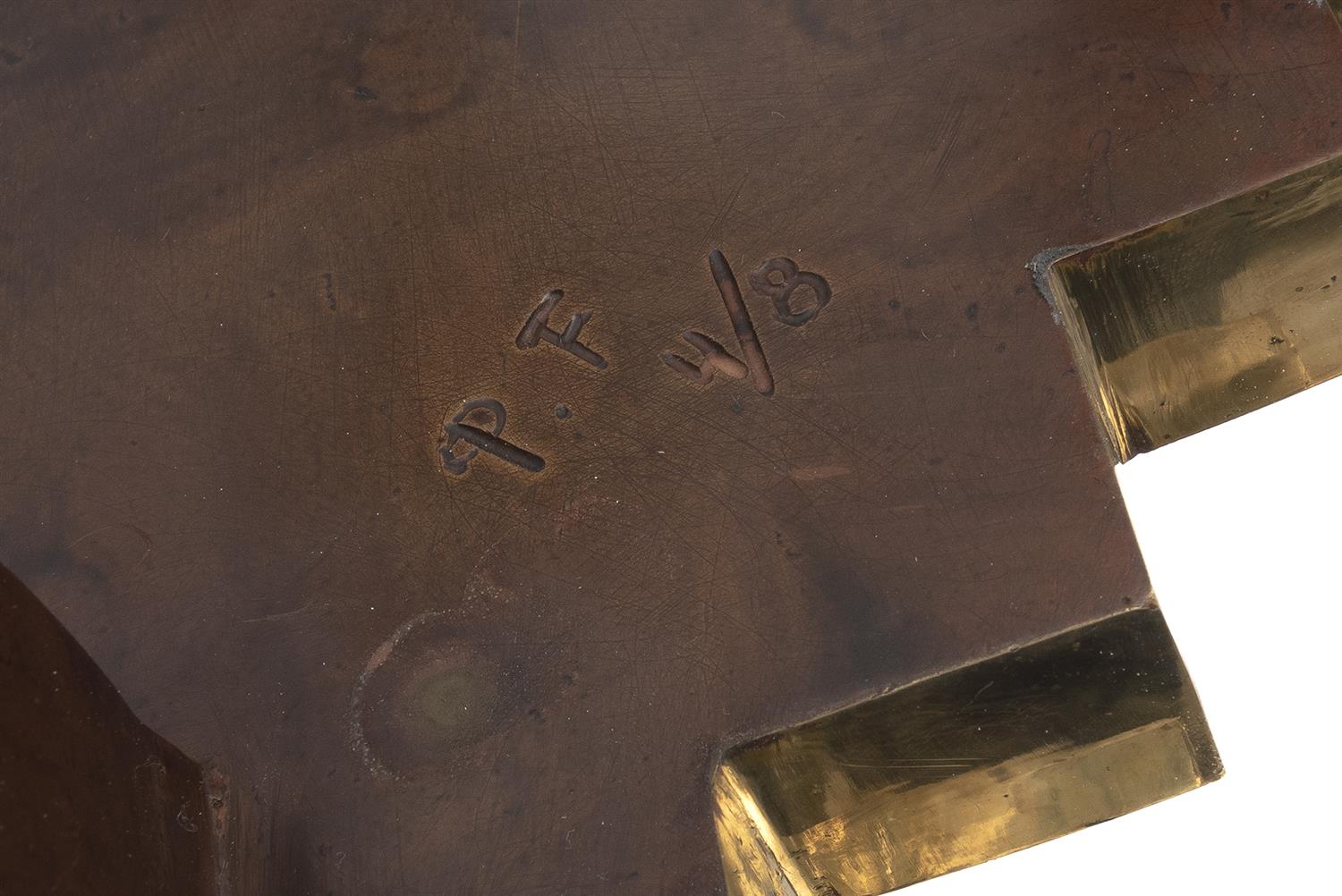 Subasta 997, Lote # 192 PEDRO FRIEDEBERG (Florencia, Italia, 1936 - ) Tu y yo, Zig zag Firmadas Escultura en bronce 4 / 8 Piezas: 2 Con certificado de autenticidad del artista, mayo del 2019. "Lo que sucede en la cabeza de Pedro Friedeberg es un misterio, un mecanismo que debe haberse desencadenado en la infancia y le llenó los ojos de formas sucesivas que el repitió una y otra vez, espacios y perspectivas con las que él jugó y a las que convirtió en un eterno rompecabezas". Elena Poniatowska. Fuente consultada: PONIATOWSKA, Elena. "Pedro Friedeberg". México. Diario La Jornada, sección Cultura, 11 de septiembre de 2011. Derechos Reservados © Pedro Friedeberg 58 x 29 x 27.5 cm cada una Medidas totales variables Estimado $180,000-220,000