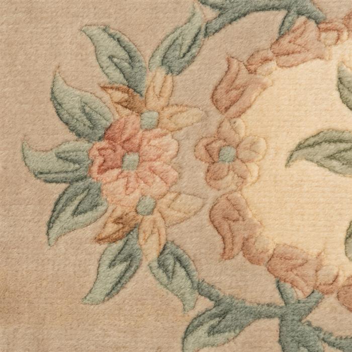 Medallón central sobre fondo beige.
