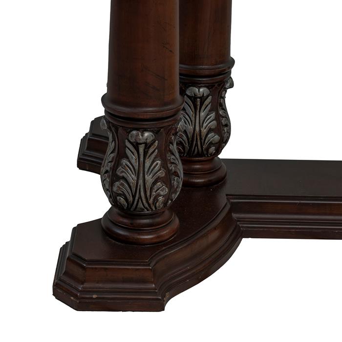 Consta de mesa, 10 sillas, 2 sillones y vitrina