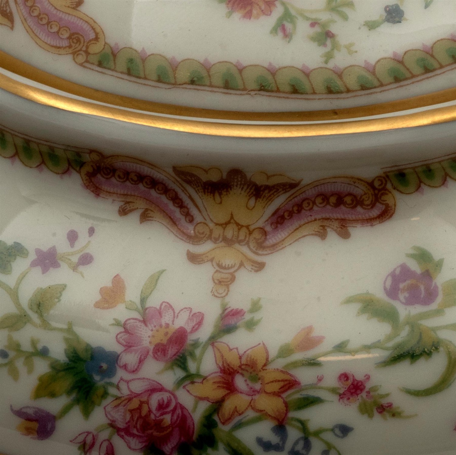 Consta de 10 tazas, 12 platos terno, 12 platos dulce, 12 platos pam, 12 platos trinche, 12 platos ensalada, 12 platos soperos, 2 platones ovales, salsera, cremera, azucarera , legumbrera y sopera