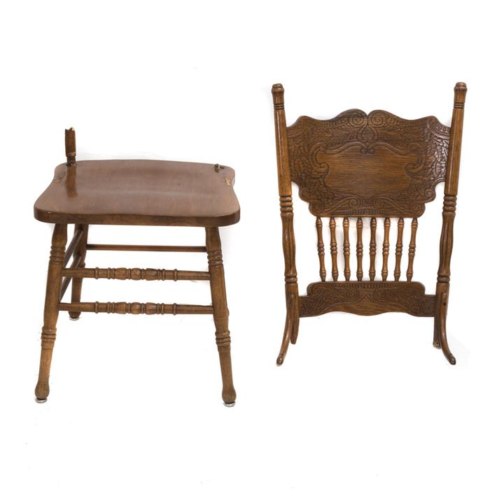 a) 10 Sillas. Estilo Art and Crafts. 9 con acojinados en textil color salmón. Una con respaldo roto.