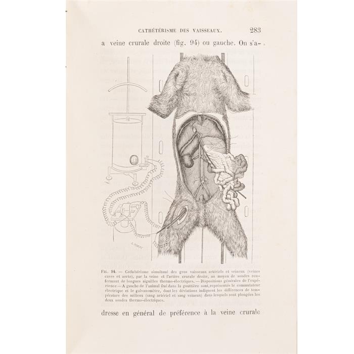 Lecons de Pathologie Expérimentale.X + 604 + 4 p. Pastas con cantos y puntas gastados. Lecons sur le Diabete et la Glicogenese Animal. VIII + 576. Ejemplar con mancha de humedad en punta superior. Pasta anterior con canto inferior gastado. Lecons de Physiologie Opératoire. XVI + 614 p. Avec 116 figures intercalées dans le texte.