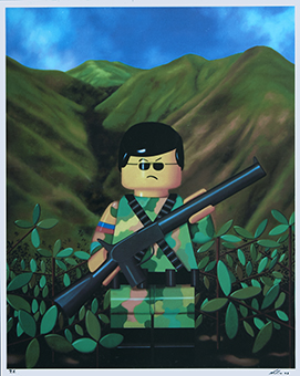 Subasta 864, Lote # 90 NADÍN OSPINA (Bogotá, Colombia, 1960 - ) Colombialand a) Muerte en el cultivo de amapola b) El alacrán c) Guerrero d) Guerrillera con ramo de amapolas e) Vaso con amapolas f) Terrorista g) Chamán h) Sicario i) Secuestrado Firmadas y fechadas 05 Serigrafías P.E. Piezas: 9, enmarcadas juntas. Procedencia: adquiridas directamente al artista. Colección particular, Ciudad de México. Publicadas en: sitio oficial del artista www.nadinospina.com La edición consta de 20 ejemplares numerados, Prueba de Taller y Prueba de Impresión. Influenciado por su familia e impulsado por su interés en el humanismo, Nadín Ospina estudió Medicina en la Universidad Javeriana de Bogotá, carrera que abandonó para estudiar tiempo después Artes Plásticas en la Universidad Jorge Tadeo Lozano de Bogotá. En la década de los 80, compartió estudios con Doris Salcedo, José Alejandro Restrepo y Carolina Ponce en un grupo dedicado a discutir textos e investigar y compartir anécdotas; además gracias a la Mención Honorífica que obtuvo en el Primer Salón Arturo y Rebeca Rabinovich, evento creado con el apoyo del Museo de Arte Moderno de Medellín, logró colocarse en el medio artístico y abrirse paso a la realización de exposiciones y participación en ferias y bienales. En los años 90, fue acreedor a la beca Francisco de Paula Santander del Instituto Colombiano de Cultura y a la beca de la Fundación Guggenheim de Nueva York. Realizó su primera exposición individual en el espacio de Nuevos Nombres en la Casa de Moneda de Colombia y representó a su país en la XX Bienal Internacional de Sao Paulo en Brasil. Su trabajo ha sido reconocido a nivel internacional, estando presente en revistas y periódicos de gran popularidad, causando polémica en galerías y museos de renombre, así como controversia en subastas de arte latinoamericano y contemporáneo a nivel mundial. A finales de los años 90, la serie "Lego Aventureros" de la empresa danesa LEGO, incluyó en sus juguetes versiones de escenarios de todo el mundo, incluida América Latina, influencia que Nadín Ospina utilizó para hacer su obra "Colombialand", la cual es una denuncia del incorrecto proceder de LEGO y su apropiación del "cliché" latinoamericano. Ante el impactante descubrimiento de este mensaje racista, inició la producción de piezas con diversas técnicas, pero pronto dio un giro a su elaborada reproducción cambiando los procedimientos, incluyendo nuevos personajes, paisajes y referentes que aluden directamente a Colombia, permitiéndole jugar una aventura en medio de un conflicto real. "Nadín Ospina entra al juego, pero cambia las reglas del mismo. En esta versión, inocentemente perversa de los juegos de construcción con bloques de plástico hay una lectura que connota específicamente la traslación de un conflicto en algún lugar de América Latina. Los muñequitos que aparecen personifican un indígena, un criminal un estereotipo de mafioso: todo listo para iniciar la aventura incierta y codificada de antemano. Tanto por el lema de Lego, como por las características negativas que llevan implícitas los protagonistas […] En ese sentido, la práctica de Nadín Ospina participa de esa 'moral del juguete' que formalizó Charles Baudelaire". María Elvira Ardila. Fuentes consultadas: ARDILA, María Elvira. "Los juegos de Nadín Ospina". Colombia. La silla vacía, sección Arte y Realidad Nacional y sitio oficial del artista www.nadinospina.com 50 x 40 cm cada una 185 x 155 cm medidas totales del marco USD $9,330-$15,545 Estimado $ 180,000-300,000