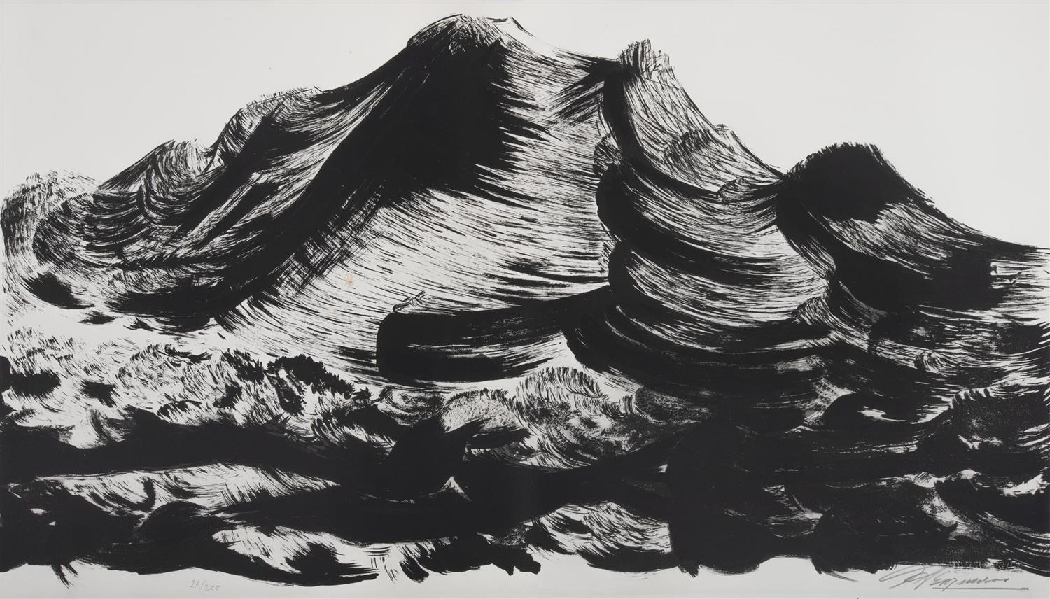 Subasta 1183, Lote # 503 DAVID ALFARO SIQUEIROS (Ciudad de México, 1896 - Cuernavaca, Morelos, 1974) Poems from the Canto General, 1968 Firmadas Litografías 26 / 200 Piezas: 10, en carpeta entelada. Impresa por el Atelier Mourlot en París, Francia en 1968. La carpeta presenta ligeros detalles de conservación. Pablo Neruda fue un poeta chileno considerado uno de los más destacados del siglo XX. Entre sus obras maestras, el "Canto General" se convirtió en una de las poesías más influyentes de todo el pueblo de América; conformada por 15 secciones, 231 poemas y 15,000 versos. Fue publicado por primera vez en México en 1950 en los Talleres Gráficos de la Nación, la edición contaba con ilustraciones originales de sus amigos David Alfaro Siqueiros y Diego Rivera. En 1968, a pedido de una empresa extranjera, Pablo Neruda y David Alfaro Siqueiros realizaron una carpeta especial con una selección de poemas del "Canto General" y 10 litografías, algunas en blanco y negro, y posteriormente otras intervenidas cromáticamente con aplicación de dos a tres colores. Anterior a la publicación, David Alfaro Siqueiros ya había seleccionado las 10 piezas con las que confeccionaría las planchas para la carpeta, esto durante uno de sus encarcelamientos. Así, bajo el título "Pablo Neruda, poems from the Canto General", la carpeta fue impresa por Fernando Mourlot, quien envió a México a un experto impresor con el material necesario para realizar el proceso litográfico, no obstante el trabajo final se imprimió en París, de ellos sólo 200 fueron para comerciar. Fuente consultada: PÉREZ GARCÍA, Carina. "Exhibe MBJ carpeta de grabados de Siqueiros con textos de Neruda". México. Voz e Imagen Noticias, sección Cultura, 10 de mayo de 2014. 57.5 x 102.5 cm medidas totales de cada una 66 x 58 x 8 cm medidas totales de la carpeta Estimado $150,000-200,000