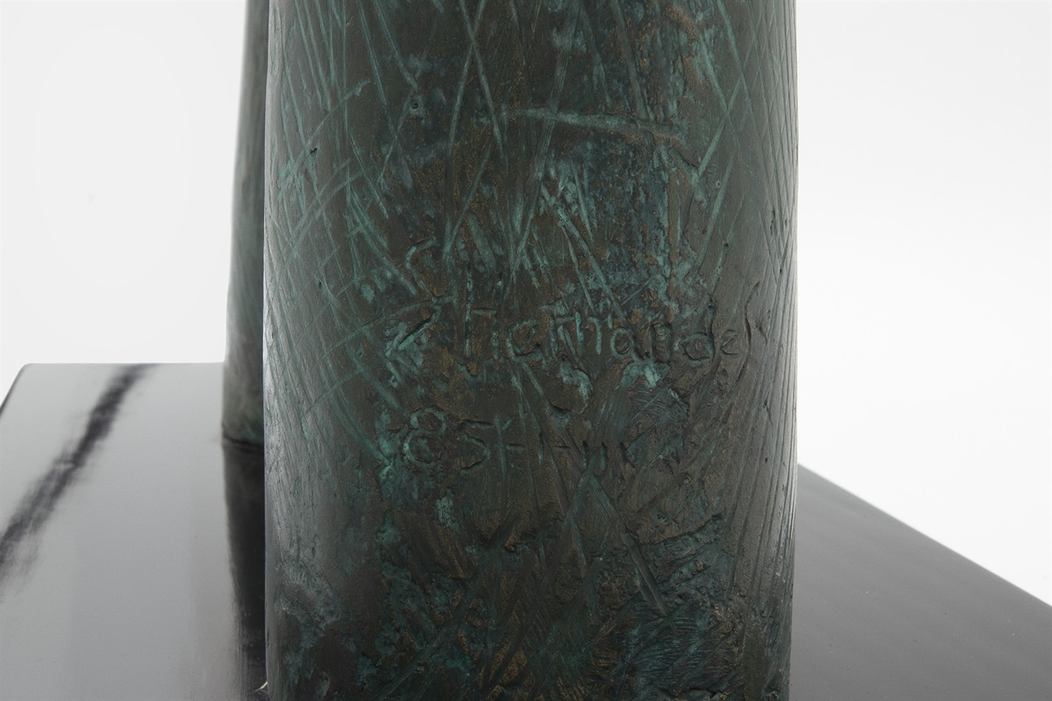 Los Torii son los arcos tradicionales de los santuarios sintoístas o áreas sagradas en Japón. Según la cosmogonía japonesa, marcan la frontera entre el espacio profano y lo sagrado; la puerta al mundo espiritual. En esta escultura, Sergio Hernández toma esta concepción y le atribuye rasgos humanos, como si aquella estructura arquitectónica cobrara vida.