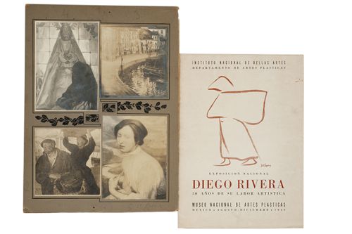 LZ - Diego Rivera. Catálogo de Exposición y Estudios Fotográficos. a) Exposición Nacional Diego Rivera 50 Años de su Labor Artística. Museo Nacional de Artes Plásticas. México - Agosto - Diciembre - 1949. b) Cuatro Estudios Fotográficos. Diferentes formatos. Pegados sobre cartón. Total de piezas: 2.