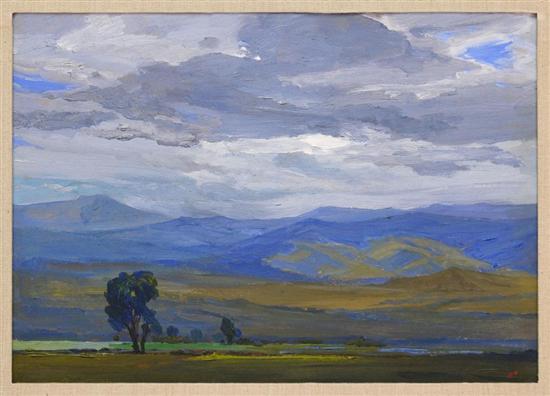 Subasta 612, Lote # 111 JOSÉ BARDASANO Paisaje Firmado. Óleo sobre masonite. (N. Madrid, España, 1910 - Madrid, España 1979.) Extraordinario dibujante, pintor sensible, especialmente dotado para llegar tanto al espectador cultivado como al que se enfrenta con un cuadro por primera vez, creó una obra cargada de romántico lirismo, que no perdió nunca un peculiar y entrañable sentido popular. A finales de la década de los treinta llegó a México. En 1940, presentó una muestra de su obra, alcanzando rápidamente un sólido prestigio, que lo llevó no sólo a dar clases de dibujo y pintura, sino a realizar una larga serie de retratos, encargos oficiales, ilustraciones de libros, viajes a distintos países de Hispanoamérica y después de veinte años de ausencia, en 1960, su regreso definitivo a Madrid. Dejó en México obras importantes, centenares de amigos y discípulos a los que siempre recordaría con emoción y gratitud. 37 x 52.5 cm Estimado $80,000-150,000