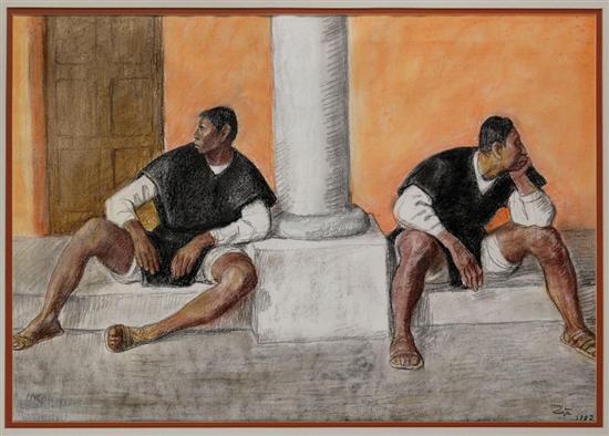 Subasta 612, Lote # 173 FRANCISCO ZÚÑIGA Chamulas, 1982 Firmado y fechado 1982. Crayón y pastel sobre papel blanco. Con certificado de autenticidad de Galería de Arte Misrachi, octubre de 1991, titulado Dos indígenas de Chiapas. Agradecemos al Sr. Ariel Zúñiga por la verificación de autenticidad de esta obra, octubre de 2011. Publicada en: ZÚÑIGA, Ariel, et al. "Francisco Zúñiga. Catálogo Razonado. Volúmen IV: Dibujos 1971 - 1989." México. Ed. Albedrío - Fundación Zúñiga Laborde, A.C., 2006. Pág. 674, catalogado 2999. 50 x 70 cm Estimado $120,000-150,000