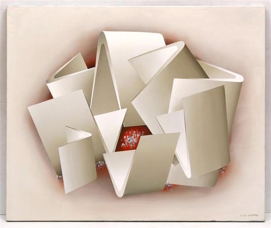 Subasta 612, Lote # 180 KURT LARISCH M - 72 Firmado. Óleo sobre tela. (N. Viena, Austria, 1913 - 2009) Pocos artistas muestran la realidad mundial y las experiencias del holocausto en la forma en que lo hizo Kurt Larisch. Vienés de nacimiento, global por sus experiencias de vida, Larisch aprendió las técnicas pictóricas de su padre, quien pintaba miniaturas, y de su abuelo, quien era escultor. Fue uno de los primeros artistas austriacos en experimentar y producir películas de animación. Larisch, superviviente del holocausto, vivió en la India después de la Segunda Guerra Mundial, donde continuó experimentando con sus temas originales obstinadamente, sobretodo su visión crítica de la conformidad y la deshumanización de las masas mediante pequeñas figuras humanas yuxtapuestas a grandes elementos geométricos, sus composiciones son audaces y se caracterizan por el uso de contrastes y degradados de color. El gran éxito obtenido por su obra en países como México, Canadá, Francia, Italia, Alemania, Suiza, Bélgica, Costa Rica, Venezuela, Panamá, India y Gran Bretaña dan testimonio de la universalidad de su mensaje. Véase: www.chasengalleries.com 76 x 91 cm Estimado $30,000-40,000