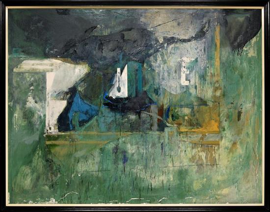 ALFONSO MENA Abstracto en verde Firmado al reverso. Óleo sobre tela. Presenta desprendimientos en capa pictórica. (N. Ciudad de México, 1961 - ) Estudió en La Esmeralda. Ha sido maestro de Artes Plásticas de la ENAP. A lo largo de su carrera ha recibido becas y reconocimientos en México y el Extranjero. Entre bienales, ferias, concursos, salones y colectivas, ha participado en mas de noventa exposiciones. Su obra forma parte en museos y colecciones privadas en diferentes partes del mundo. Actualmente trabaja y vive en México y Nueva York. "El objeto en la obra de Alfonso Mena aparece como un residuo arqueológico. Sólo a través de estos restos de formas "reconocibles" excavadas bajo capas y capas de materia pictórica, podemos constatar el proceso de destrucción que alimenta la obra." Osvaldo Sánchez. 177 x 230 cm Estimado $100,000-150,000