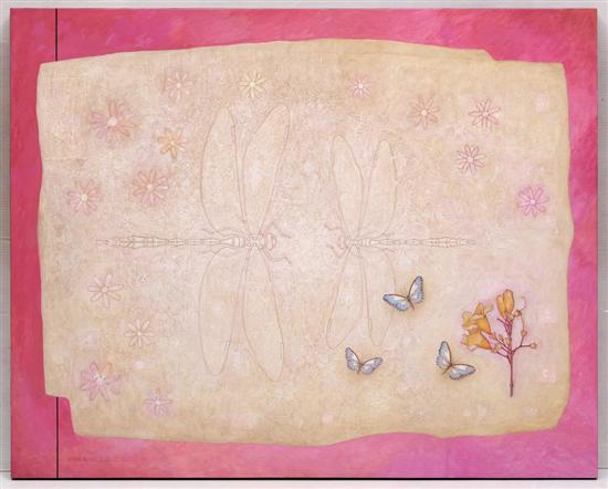 Subasta 612, Lote # 187 MARIO RANGEL Irrupción, 2011 Firmado. Acrílico en tela sobre madera. Con certificado de autenticidad del artista. Agradecemos al Maestro Mario Rangel por la verificación de autenticidad de esta obra, septiembre de 2011. (N. Ciudad de México, 1938) Una cualidad de misterio, como una invitación a la complicidad en la historia, como una voz que nos dice oigan les voy a contar una cosa, un secreto entre nosotros, algo que me pasó y quisiera compartir con ustedes. Es un suspenso divertido consigo mismo, un suspenso juguetón, mitad en broma, pero en el fondo muy en serio. El pintor de estos cuadros tiene el oficio perverso de pintar un secreto para compartirlo lentamente con su público a lo largo de los años y de las obras. Véase: RUY SÁNCHEZ, Alberto, et al "Mario Rangel." México. Galería Estela Shapiro, 1997. 80 x 100 cm Estimado $50,000-70,000