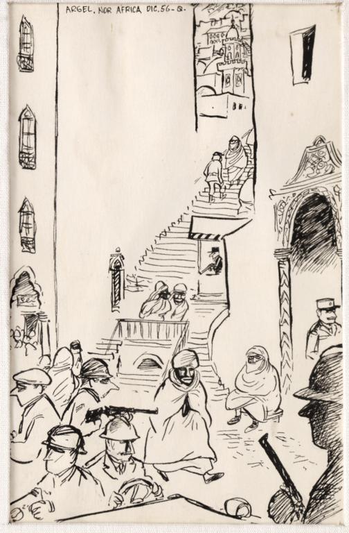 Subasta 612, Lote # 151 ABEL QUEZADA Argel.nor Africa Firmado Q y fechado Dic-56. Dibujo a tinta sobre papel. Agradecemos a Abel Quezada Rueda por la verificación de autenticidad de esta obra, octubre de 2011. (N. Monterrey, Nuevo León, 1920-Cuernavaca, Morelos, 1991) Con Abel Quezada aparece la sátira moderna en México, la propia de una sociedad urbana ya independizada de la poesía, a la caza del humor involuntario, convencida del poder corrosivo de la ironía. Desde sus primeros cartones, Quezada se revela como un autor satírico de primer orden, y a esto debe su éxito. Véase: MORALES, Alfonso, et al. "Abel Quezada. El mejor de los mundos posibles." México. Museo de Arte Rufino Tamayo-CONACULTA-INBA-Abel Quezada Asociación Civil, 1999. Pág. 30. 22.3 x 14.5 cm Estimado $30,000-50,000