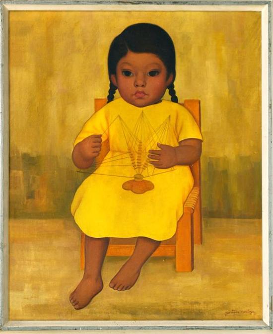 GUSTAVO MONTOYA (Retrato de niña) Firmado. Óleo sobre tela. (N. Ciudad de México, 1905 - Ciudad de México, 2003) ''Como el oficio me aplastaba, para contrarrestarlo me sujeté la mano derecha y pinté con la izquierda. De allí salió lo mío, lo mejor. Eso lo hice sin que nadie me aconsejara. Entonces, ya cogí la mano derecha otra vez, pero con otro concepto". Gustavo Montoya. 54 x 44 cm Estimado $40,000-60,000