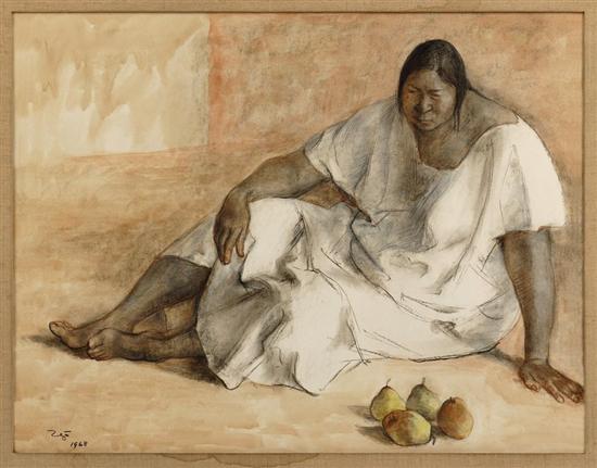 FRANCISCO ZÚÑIGA Sin título (Mujer con manzanas) Firmado y fechado 1968. Carbón acuarela y pastel sobre papel. Agradecemos al Sr. Ariel Zúñiga por la verificación de autenticidad de esta obra, octubre de 2011. Aparecerá en el catálogo razonado del artista Volumen V (en proceso). 48.5 x 63 cm Estimado $120,000-150,000
