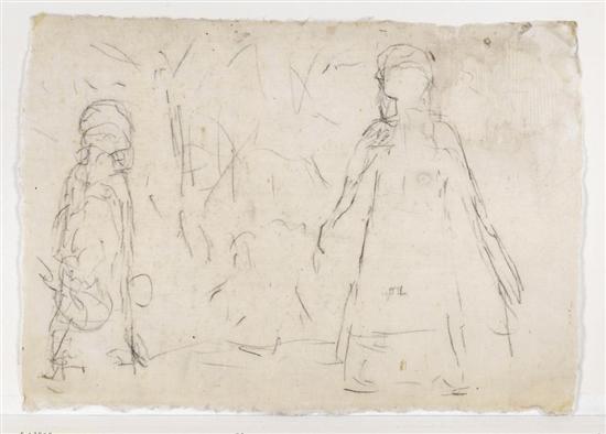 DIEGO RIVERA Apunte Carbón sobre papel arroz. Con certificado de autenticidad de origen de Juan Coronel Rivera. Agradecemos a Juan Coronel Rivera por la verificación de autenticidad de esta obra, octubre de 2011. Presenta detalles de conservación y humedad. 28.1 x 39.5 cm Estimado $40,000-50,000