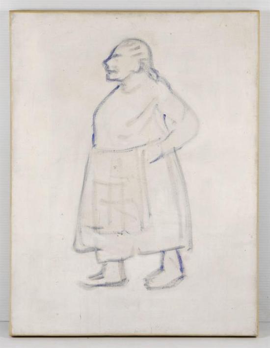 DIEGO RIVERA Mujer con delantal / Mazahua Óleo sobre tela. Con certificado de autenticidad de origen de Juan Coronel Rivera. Agradecemos a Juan Coronel Rivera por la verificación de autenticidad de esta obra, octubre de 2011. Publicado en: Diego Rivera. Obra inconclusa. Con etiqueta Museo Mural Diego Rivera / CONACULTA / INBA, 1999 - 2000. Reproducida en color en las páginas 21 y 43, número de catálogo 13. Con etiqueta Museo Estudio Diego Rivera y Frida Kahlo exposición "Ay, ay, ay... las mujeres: Diego Rivera y sus modelos." 2002-2003. 59.5 x 45.5 cm Estimado $80,000-100,000