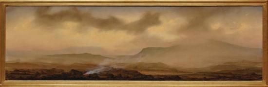 SANTIAGO CARBONELL Paisaje XXI Firmado y fechado 00. Óleo sobre lino. Con certificado de autenticidad de Praxis arte internacional firmado por el artista, noviembre de 2000. "De los ochentas a los dosmiles Santiago Carbonell ha recorrido un largo trecho que es paradójicamente cercano a muchas formas del arte y al pensamiento de muchos de los artistas que hoy construyen nuestra extraña modernidad. No veo lección más clara de que el arte es sobre todo una azarosa conspiración de soledades."Ignacio Padilla, 2006. 50 x 170 cm Estimado $180,000-220,000