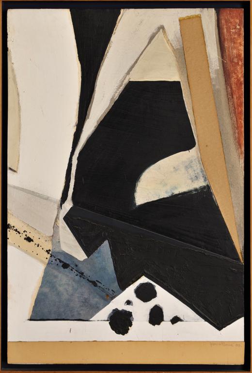 Subasta 612, Lote # 84 FERNANDO GARCÍA PONCE Sin título Firmado y fechado 83. Óleo y collage sobre masonite. Un día, por casualidad, dejó un retrato a lápiz de Humprey Bogart en la sala. Don Enrique Climent, quien era amigo de nuestros padres, lo vio, se quedó con él en las manos y preguntó quién lo había hecho. Fernando tuvo que confesar su culpa. Climent le dijo que era un pintor nato y se ofreció a darle clases. Esta proposición era un gran honor […] Como todos los verdaderos artistas, poco a poco Femando fue apartándose de él y siguiendo sus propios gustos. El primero en darse cuenta fue Don Enrique que le dijo: "Ya no tengo nada que enseñarte". Véase: GARCÍA PONCE, Juan. "Vida, Formas y Muerte de Pintor" México. Revista Vuelta, Agosto de 1997. Número 249. pp. 28-33. 82.7 x 55.3 cm Estimado $180,000-250,000
