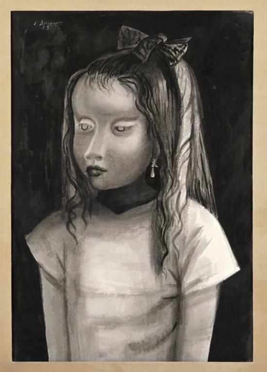 JUAN SORIANO Niña Firmada y fechada 53. Tinta sobre papel. Agradecemos a Marek Keller, director de la Fundación Juan Soriano y Marek Keller A.C. por la verificación de autenticidad de esta obra, octubre 2011. Con etiquetas de Christie´s Subasta 2222, 17 nov. 09, lote 159; Mary - Anne Martin / Fine Art; INBA- Museo Nacional de Artes Plásticas y Galería Antonio Souza. 'Lo que en el fondo te deprime es el miedo a vivir. El pensamiento que no va seguido de un acto práctico es estéril.' Juan Soriano. 55.5 x 38.5 cm Estimado $90,000-120,000