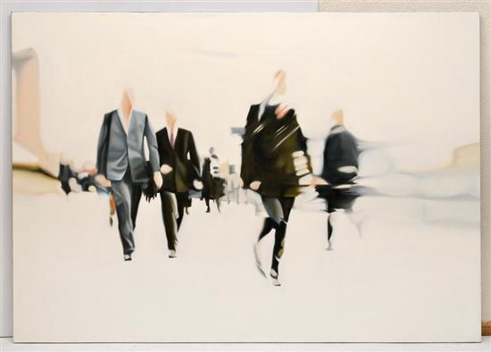 Subasta 612, Lote # 141 OFILL ECHEVARRÍA Prado Firmado "Ofill Echevarría" "Ofill Industrial" 2010 /NYC/USA, al reverso. Óleo sobre tela. Con certificado de autenticidad del artista. Procedencia: Galería Alfredo Ginocchio. (N. La Habana, Cuba, 1972 - ) Realizó sus estudios en la Escuela Elemental 20 de Octubre y en la Academia de San Alejandro en La Habana, Cuba. Obtuvo la beca otorgada por el Fondo Nacional para la Cultura y las Artes (FONCA) con su proyecto de investigación: "El Rito, El Mito y El Futuro Inmediato." Ginocchio Galería lo ha presentado en diversas e importantes ferias internacionales de arte en Latinoamérica y Estados Unidos. Su obra forma parte de colecciones en importantes museos en Cuba, México y Estados Unidos. "En las confluencias urbanas de Ofill, en sus países, los personajes existen en colectivo o se dirigen, apresurados, a la colectividad dadora de sentido. Los individuos se reafirman por sus sombras, el ancho de sus caras, la estatura y la velocidad." Emilio Ichikawa. Véase: ICHIKAWA, Emilio. "Ofill Echevarría: la teología del arte." Cuba. Revista Encuentro 31 de octubre de 2008. 121 x 172 cm Estimado $70,000-90,000