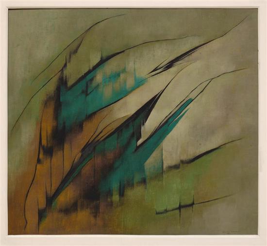 LUIS GARCÍA GUERRERO Composición Firmado y fechado 1961. Acrílico sobre tela. García Guerrero llevó a la abstracción el rigor que caracteriza toda su obra adulta. Intentó lograr una escritura casi automática, pero contenida en una arquitectura consciente. Intuía que todo arte verdadero es producto de una meditación y no una mera cuestión de azar como muchos concibieron que debía ser la pintura abstracta. Pintar es una actividad donde es necesario que se produzcan algunas sorpresas, surjan armonías inesperadas y se produzcan juegos insólitos de formas y colores. Luis García Guerrero decía: "Sólo entonces se puede hablar de inspiración, pero aún ahí debe estar siempre presente esa conciencia que le impide al creador derrumbarse en el caos." Si uno de esos componentes deja de existir el cuadro resulta más próximo a la muerte que a la vida. Véase: PITOL, Sergio. "Luis García Guerrero." México. Ediciones la Rana, Gobierno del estado de Guanajuato, 1993. 43 x 48 cm Estimado $75,000-90,000
