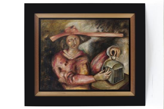 Subasta 612, Lote # 188 JOSÉ BAYRO La Sta. del conejo Firmado y fechado 2011. Óleo sobre lino. (N. Cochabamba, Bolivia, 1960 - ) José Bayro se aparta de las representaciones clásicas para incursionar en lo que podría llamarse "la distorsión de los valores en fuga." A Bayro, poseedor de una cultura plástica muy firme, las modas no le han interesado. Es como un ejercicio del gusto, alguien que le atribuye a la representación el carácter de un recorrido por la vida social, el universo sexual, la vida de las parejas, los alcances de la ansiedad de lo solitarios. Él se enfrenta a las telas no para alcanzar esa reducción al absurdo de las páginas de sociales que es la ambición del éxito, sino para acercar a los espectadores a la revisión de su mirada. José Bayro pinta una realidad y una irrealidad simultáneas, es un artista con motivaciones evidentes, y es también un pintor que, como es debido, a sí mismo se oculta una parte de lo que va escudriñando, pintando y leyendo en cada uno de sus cuadros. Véase: MONSIVÁIS, Carlos, et al. "Bayro.Distorción de los valores en fuga." Bolivia. 70 x 89 cm Estimado $50,000-70,000