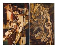Subasta 714, Lote # 92 A - Paz, Octavio / Duchamp, Marcel. Libro Maleta. México: Ediciones ERA, 1968. 4o. marquilla. Diseño de Vicente Rojo a la manera de Marcel Duchamp. Contiene: - El Ensayo de Octavio Paz: Marcel Duchamp o el Castillo de la Pureza. 8o. marquilla apaisado, 62 p. Encuadernado en pasta dura. - Una reproducción en lámina de claracil del Gran Vidrio "La Novia Desnudada por sus solteros, incluso. 1915 - 23". - Dos láminas en color (de tres): "Desnudo que desciende una escalera, no. 2. 1912." y "La Novia. 1912.". - Un sobre con nueve reproducciones. - Un álbum fotográfico, con reproducciones de textos autógrafos, una nota biográfica de Marcel Duchamp. Falta: Texto de Marcel Duchamp, seleccionados por Octavio Paz... Primera edición. Edición de 3,000 ejemplares. Carpeta en estuche. Estimado $6,000-8,000