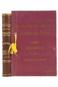 Subasta 714, Lote # 238 L - Caso, Antonio / Amor, Guadalupe. Discursos a la Nación Mexicana / Soy Dueña del Universo. a) Caso, Antonio. Discursos a la Nación Mexicana. México: Librería de Porrúa Hnos., 1922. 8o. marquilla, 248 p. Recortado en esquina inferior de la portada. Dedicado por el autor. Lomo y pastas gastados. Encuadernado en pasta dura, lomo y puntas en piel. b) Amor, Guadalupe. Soy Dueña del Universo. Sin pie de imprenta, Julio 1984. 8o. marquilla, 25 sonetos. Dedicado y firmado por la autora. Atado con listón, a modo de carpeta, en rústica. Total de piezas: 2. Estimado $3,000-4,000