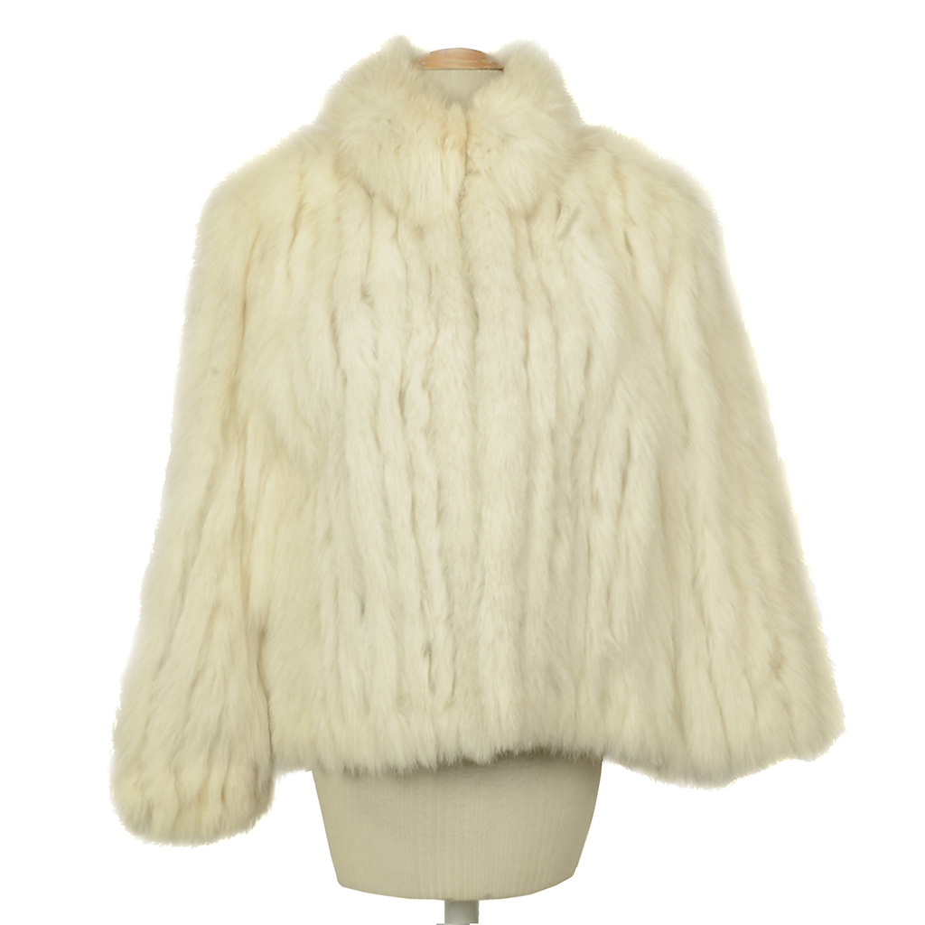 Saco. Siglo XX. Elaborado en piel de zorro color beige. Con etiqueta de Saga Fox. Talla aproximada: mediana. Presenta detalles de conservación y desgaste. Estimado $1,300-1,500