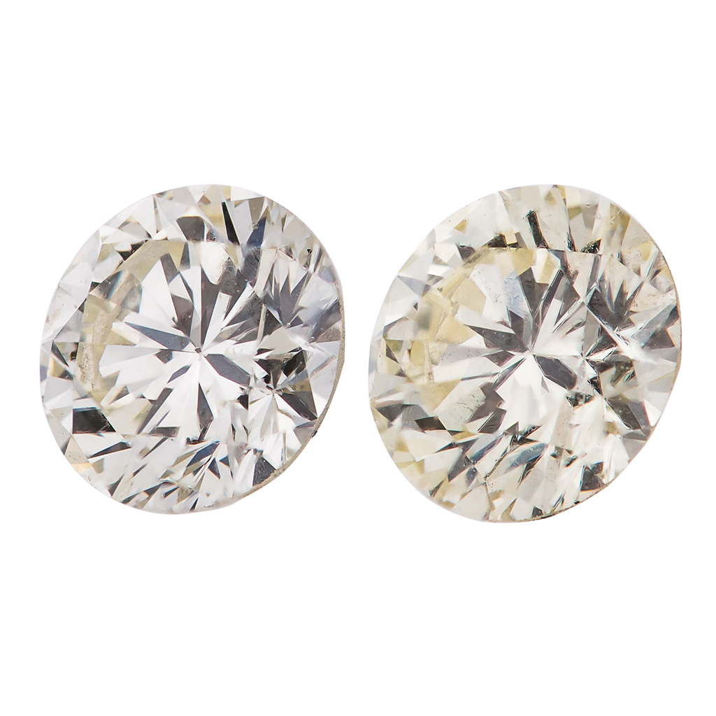 Subasta 779, Lote # 114 PAR DE DIAMANTES SIN MONTAR 1 Diamante corte brillante = 0.61 ct Claridad: VVS2 Color: L 1 Diamante corte brillante = 0.59 ct Claridad: VS2 Color: K Estimado $23,000-40,000