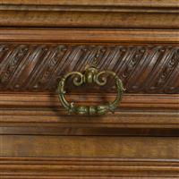 Con cubierta de mármol veteado, 2 puertas, 2 cajones, repisa superior y soportes tipo bollo.
