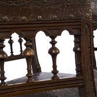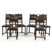 Con respaldos y asientos de cuero labrado, chambrana en "H" y soportes compuestos.