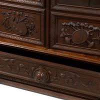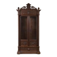 Decorado con remate superior, escudo de armas, pináculos, cartela, acantos, roleos, cenefas orgánicas y columnas torzales.