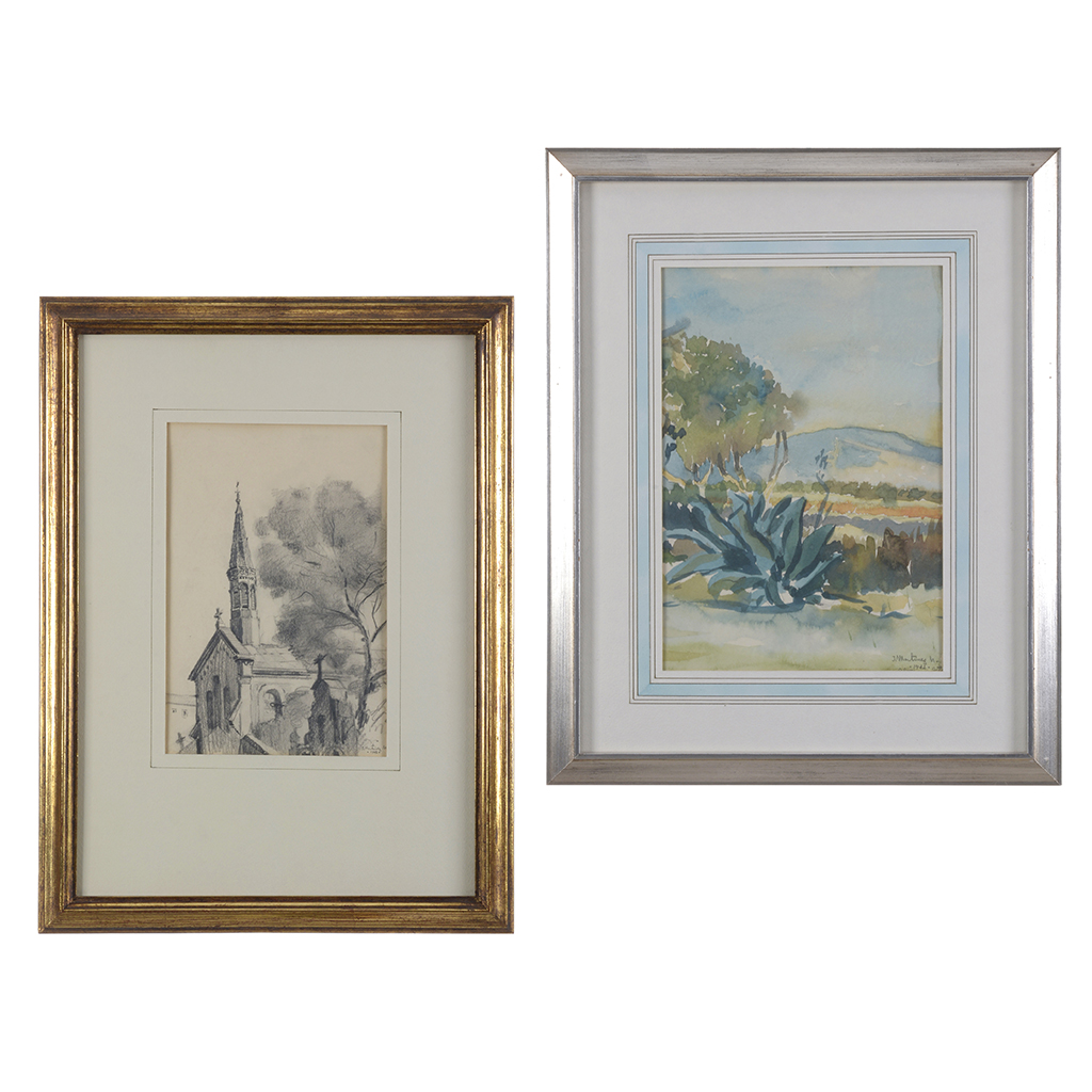 b) Vista de iglesia. Lápiz sobre papel. Firmado y fechado 1943. Dimensiones: 26.5 x 17.5 cm.