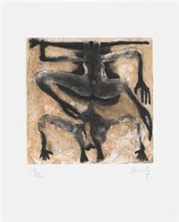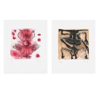 Subasta 835, Lote # 309 SERGIO HERNÁNDEZ (Huajuapan de León, Oaxaca, 1957 - ) De la carpeta Popol Vuh Firmados Grabados al aguatinta 28 / 40 Piezas: 2 Ambos con sello de agua del taller de grabado Fernando Sandoval. Uno de ellos publicado en: sitio del taller de grabado Fernando Sandoval www.tallerdegrabadofernandosandoval.com Al igual que Diego Rivera y Carlos Mérida, el pintor oaxaqueño Sergio Hernández fue también influenciado por el legado artístico e histórico del famoso libro maya Popol Vuh. En aquel libro encontró la rica herencia de los mitos del pueblo quiché y las representaciones artísticas de los tlahcuilos, referencias que lo llevaron a realizar una serie de 30 grabados entre aguatintas y técnicas mixtas que conformaron la carpeta titulada "Popol Vuh". Este conjunto de grabados fueron impresos en el taller de Fernando Sandoval, en Oaxaca, y publicados por Marisol Espinosa, con una edición de 70 ejemplares (30 con números romanos y 40 con números arábigos). Cada carpeta fue acompañada por un texto del historiador Miguel León Portilla y un cuento del escritor Juan Villoro. En diciembre de 2012, ocho grabados fueron exhibidos en la exposición "Popol Vuh" en el Instituto Cultural de México en Nueva York, la primera exposición de Hernández en esta ciudad; y en febrero de 2014, el Instituto de Gráficas de Oaxaca presentó la serie completa en la exposición que llevó el mismo nombre. Fuentes consultadas: AGUILAR ORIHUELA, Alonso. "Expone Sergio Hernández su interpretación del Popol Vuh". México. Milenio, sección Cultura, 23 de febrero de 2014 y sitio del Taller de Fernando Sandoval www.tallerdegrabadofernandosandoval.com 20 x 20 cm área grabada, 44 x 47 cm medidas totales del papel de cada uno Estimado $ 12,000-20,000