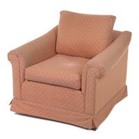Subasta 911T, Lote # 292 Sillón. Siglo XX. Estructura de madera. Con respaldo y asientos en tapicería naranja. Presenta manchas y desgaste. Estimado $ 1,300-1,500