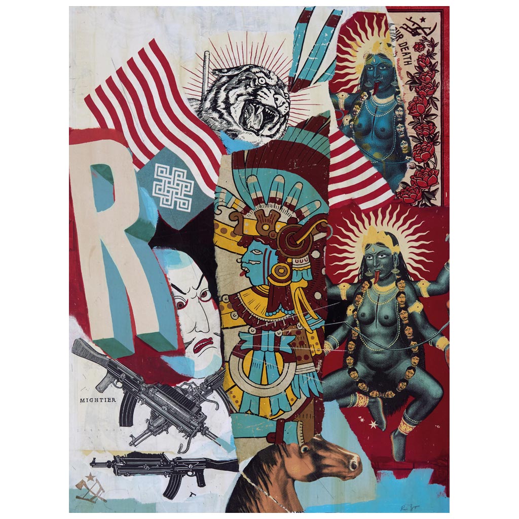 Subasta 864, Lote # 91 RAVI ZUPA (Colorado, E.E. U.U., 1977 - ) Discuss, 2017 Firmada con monograma Serigrafía, acrílico, grafito e impresiones sobre madera Con etiqueta y sello del artista al reverso. Con certificado de autenticidad del estudio de Ravi Zupa firmado por el artista. Ravi Zupa es un artista estadounidense de formación autodidacta amante de los libros de arte, mitología, religión, geografía e historia de las culturas. Es admirador de los grabadores alemanes y flamencos, del arte expresionista y abstracto, del estilo japonés y de las pinturas renacentistas. Ha sido influenciado por el el diseño de la iconografía propia de la propaganda revolucionaria de todo el mundo, así como de temas relacionados a la conciencia política, la violencia, la lucha armada, el anarquismo y el poder. Le disgusta el arte irónico y la apropiación de la cultura sin sentido, así que en su obra integra imágenes que aparentemente no están relacionadas en busca de algo universal. La mayor parte de su trabajo, lo realiza con su propia mano, pues no usa collage ni impresiones digitales, él pinta, dibuja y esculpe todo, utilizando la combinación de varias técnicas artísticas. A lo largo de su carrera su obra ha sido publicada en importantes revistas y libros del medio artístico, ha presentado exposiciones individuales en galerías de México, Estados Unidos, Reino Unido y Dinamarca, y en ferias de arte internacionales como Context Art Miami, Art San Diego y Scope Art Show en Nueva York y Miami. En 2017, presentó su obra en Los Ángeles, Chicago, San Francisco y Montreal obteniendo excelentes resultados. Fuente consultada: sitio oficial del artista www.ravizupa.com 60.5 x 46 cm USD $620-$830 Estimado $ 12,000-16,000