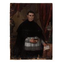 Óleo sobre tela. Firmado y fechado: "Severio Hernz de Gonz P. 1894", y con una cartela en forma de carta en la que se lee: "El Sr. D. Ma. Covarrubias Provisor y Fico. gral. de este Arzobispado Prebendado de esta Sta. Yga. Metropolit. Caballero Comendr. de la In. y Distinguida Orden de Guad. Rector de Escuelas de esta Universidad y Capn. de Sras. Religiosas recoletas de Sta. Brigida".