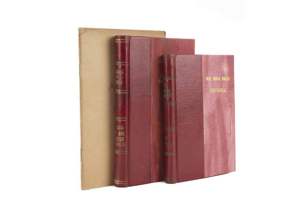 Subasta 1004, Lote # 145 Romero, José Rubén / Henestrosa, Andrés. Sentimental / Alusiones a la Guerra / Los Hombres que Dispersó la Danza. a) Romero, José Rubén. Sentimental. México: Talleres Gráficos de Herrero Hermanos Sucs., 1919. 8o., 106 p. Una lámina. Dedicado por el autor. Encuadernado en pasta dura. b) Romero, José Rubén. Alusiones a la Guerra. La Habana: Editorial Lex, 1943. 8o. marquilla, 47 p. Encuadernado en rústica. c) Henestrosa, Andrés. Los Hombres que Dispersó la Danza. México: Imprenta Universitaria, 1960. 8o. marquilla, 128 p. + 1 h. Tercera edición. Conserva pastas originales en rústica. Dedicado. Encuadernado en pasta dura. Total de piezas: 3. Estimado $2,000-3,000