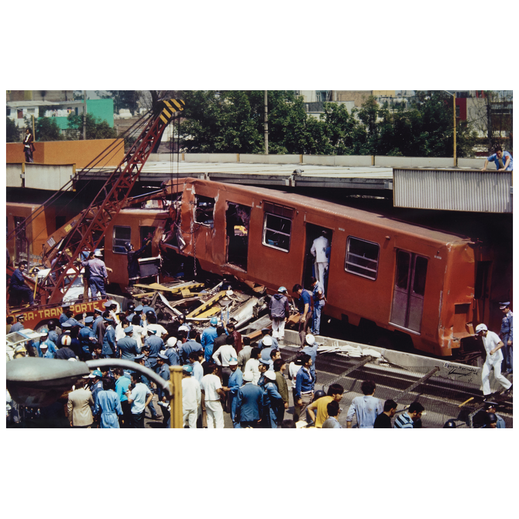 Subasta 885, Lote # 302 ENRIQUE METINIDES (Ciudad de México, 1934- ) Choque en el metro, 1975 Firmada y fechada 2018 Impresión digital Con certificado de autenticidad del artista, agosto del 2018. Procedencia: adquirida directamente al artista. Exhibida en: "Enrique Metinides. En lugar de la coincidencia", Garash Galería, Ciudad de México, 2011. Enrique Metinides es uno de los principales fotógrafos de prensa en México y en el mundo, es para algunos el representante del género periodístico de "nota roja". Durante varias décadas trabajo y publicó en los periódicos, revistas y agencias de mayor circulación: periódico La Prensa (de 1960 a 1997), Zócalo, El Universal y revistas como Magazine de Policía, Crimen, El Heraldo, entre otros. Fuente consultada: sitio oficial del artista www.enriquemetinides.com 97 x 145 cm / 38.1 x 57 pulgadas Estimado $30,000-40,000